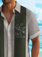 Alohadaddy 50's Retro Medieval Geometric Art Men's Bowling Shirt Pocket Camp Shirt Big Tall