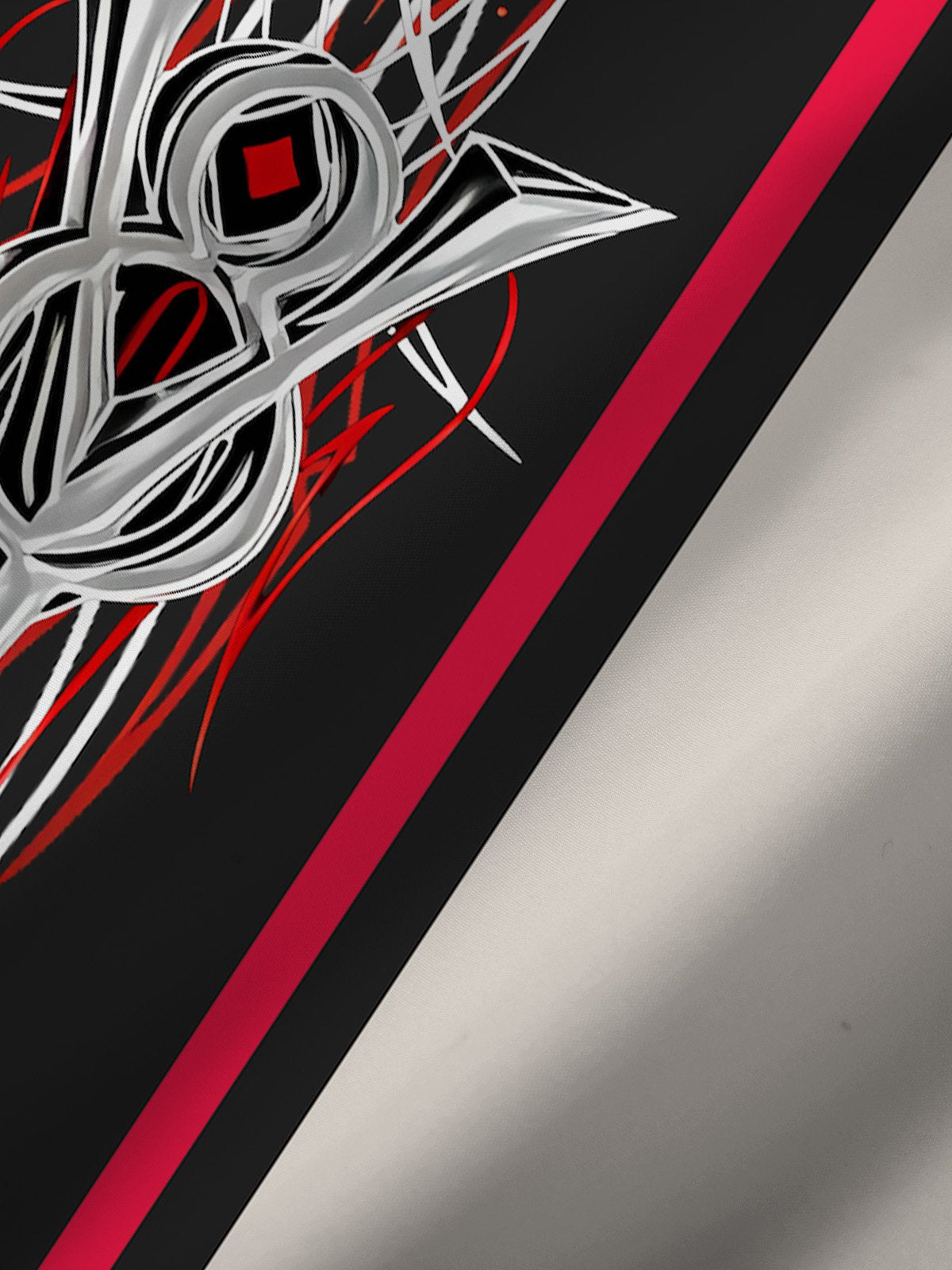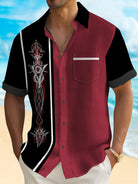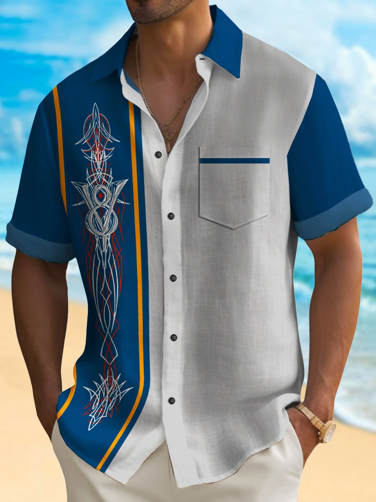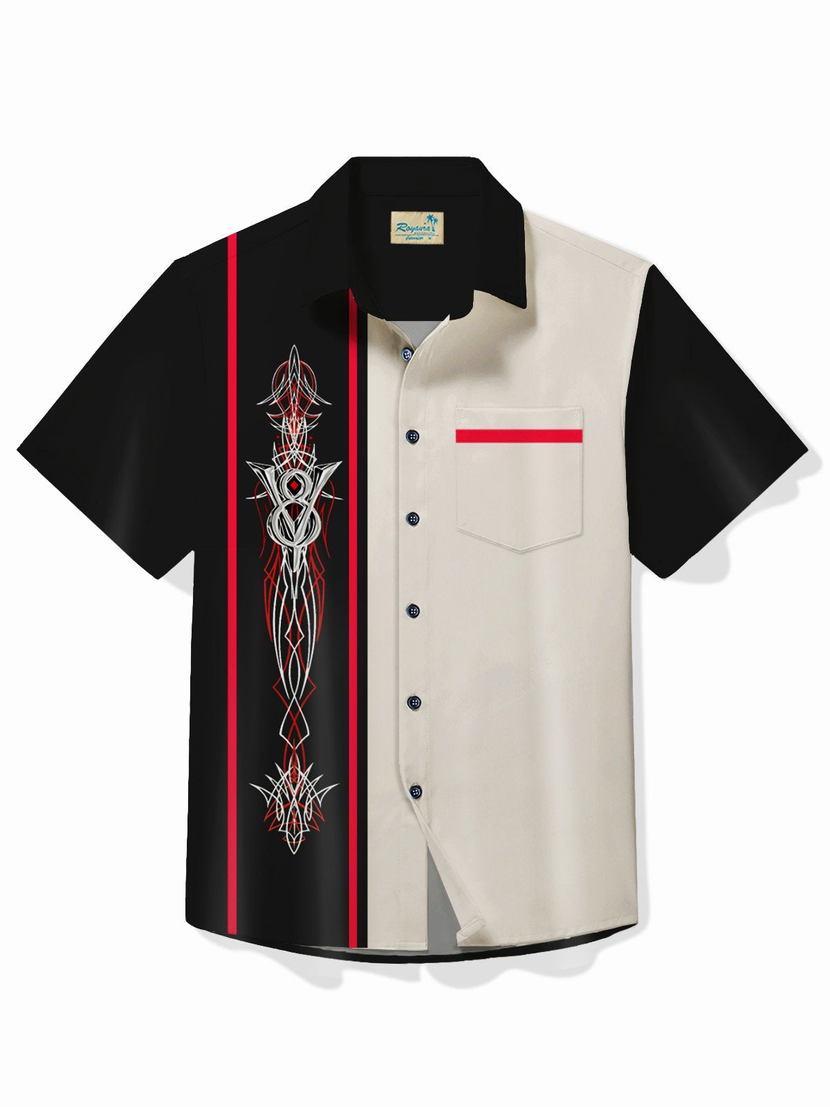 Alohadaddy 50's Retro Pinstripe Car Men's Bowling Shirt Cartoon Art Stretch Pocket Camp Shirt Big Tall