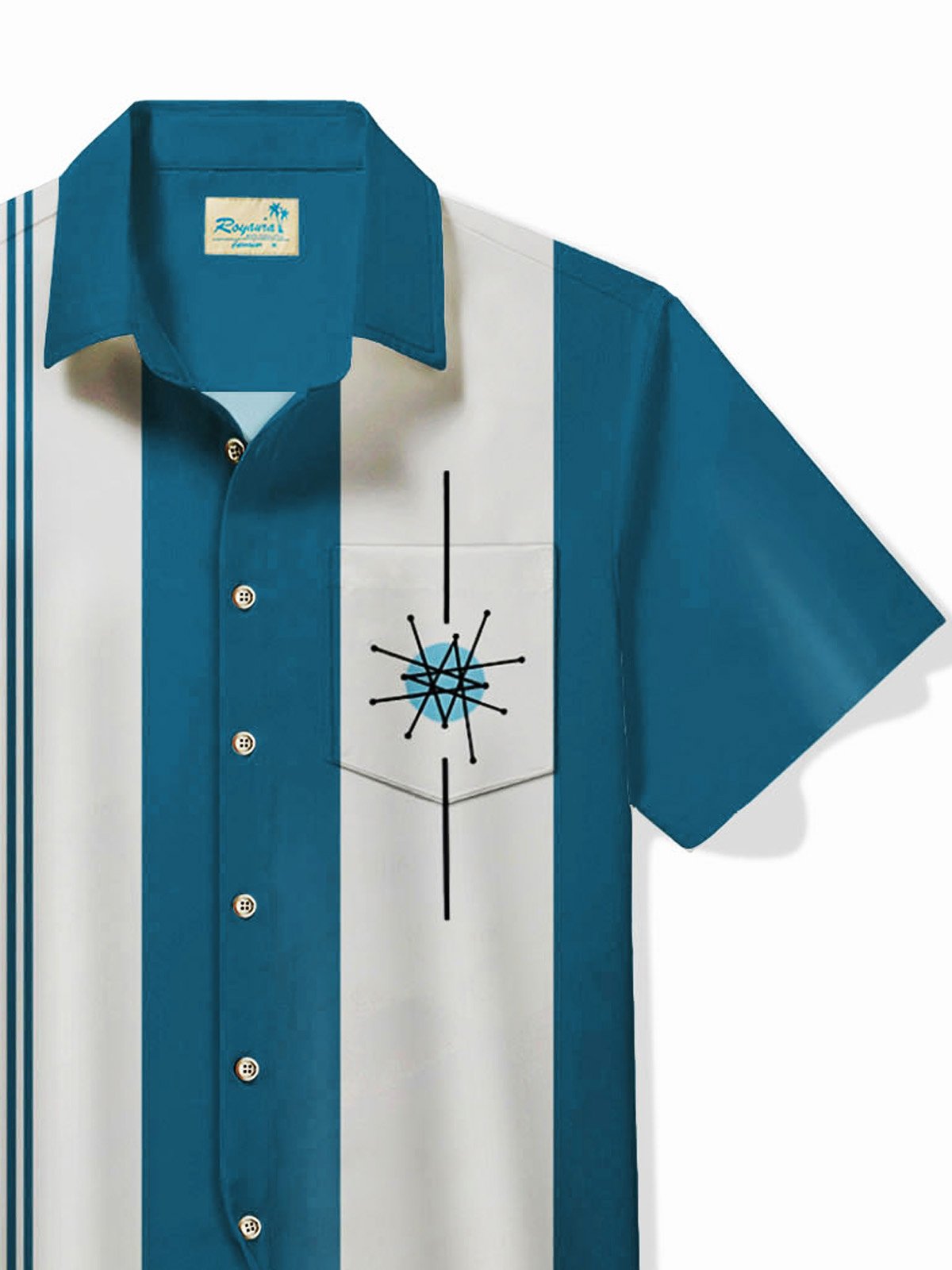 Alohadaddy 50's Vintage Bowling Shirt Medieval Geometry Stretch Quick Dry Camp Pocket Shirt Big Tall