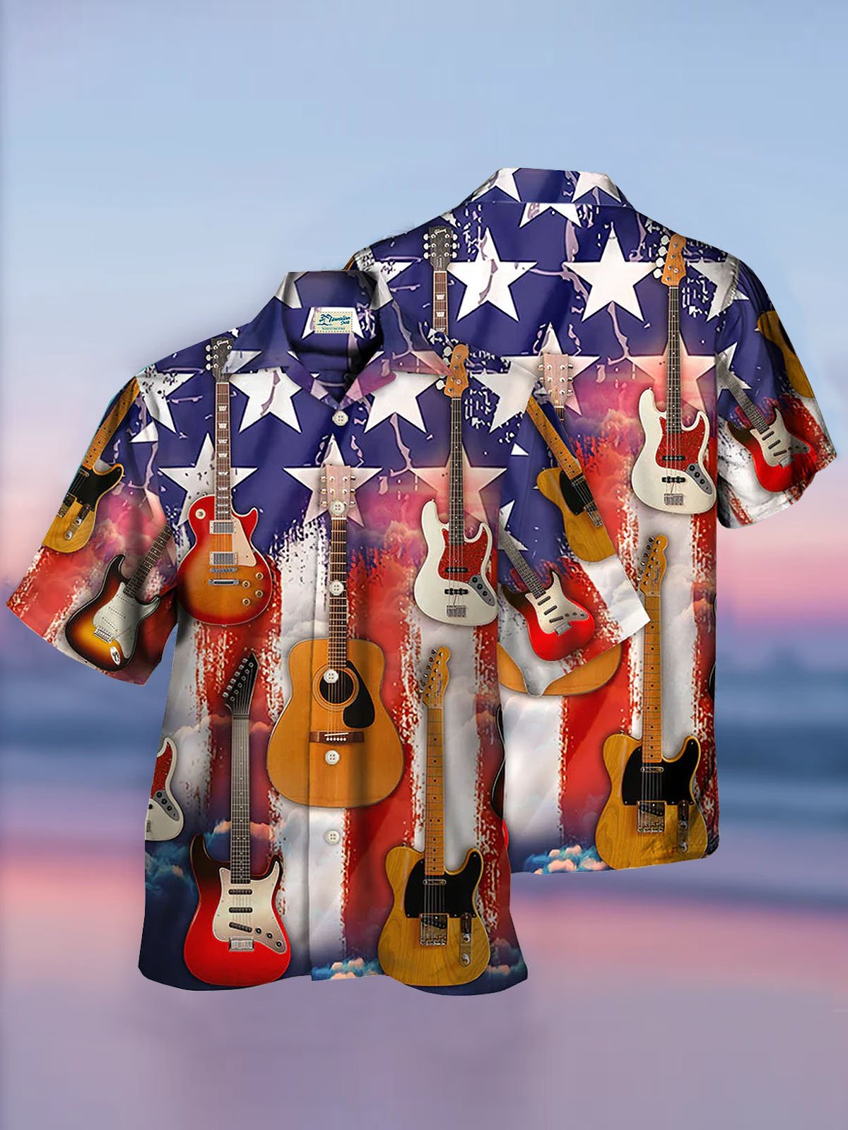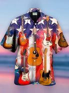 Alohadaddy American Flag Guitar Men's Button Down Pocket Shirt