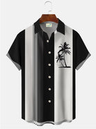 Alohadaddy Black Coconut Tree Cotton-Blend Bowling Casual Shirts