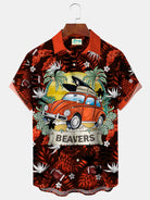 Alohadaddy Coconut Rugby Retro Car Print Men's Button Pocket Shirt