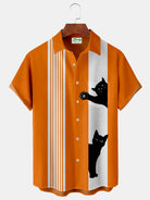 Alohadaddy Halloween Cat Print Men's Bowling Shirt with Pockets