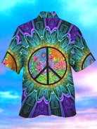 Alohadaddy Hippies Peace and Love Men's Psychedelic Vacation Beach Big & Tall Aloha Shirt