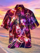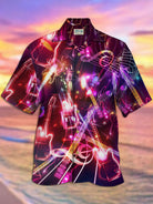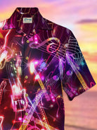 Alohadaddy Music Festival Holiday Purple Men's Hawaiian Shirt Guitar Neon Art Quick Dry Pocket Camp Shirt Big Tall