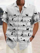 Alohadaddy Music Note Fun Cat Men Button Pocket Shirt