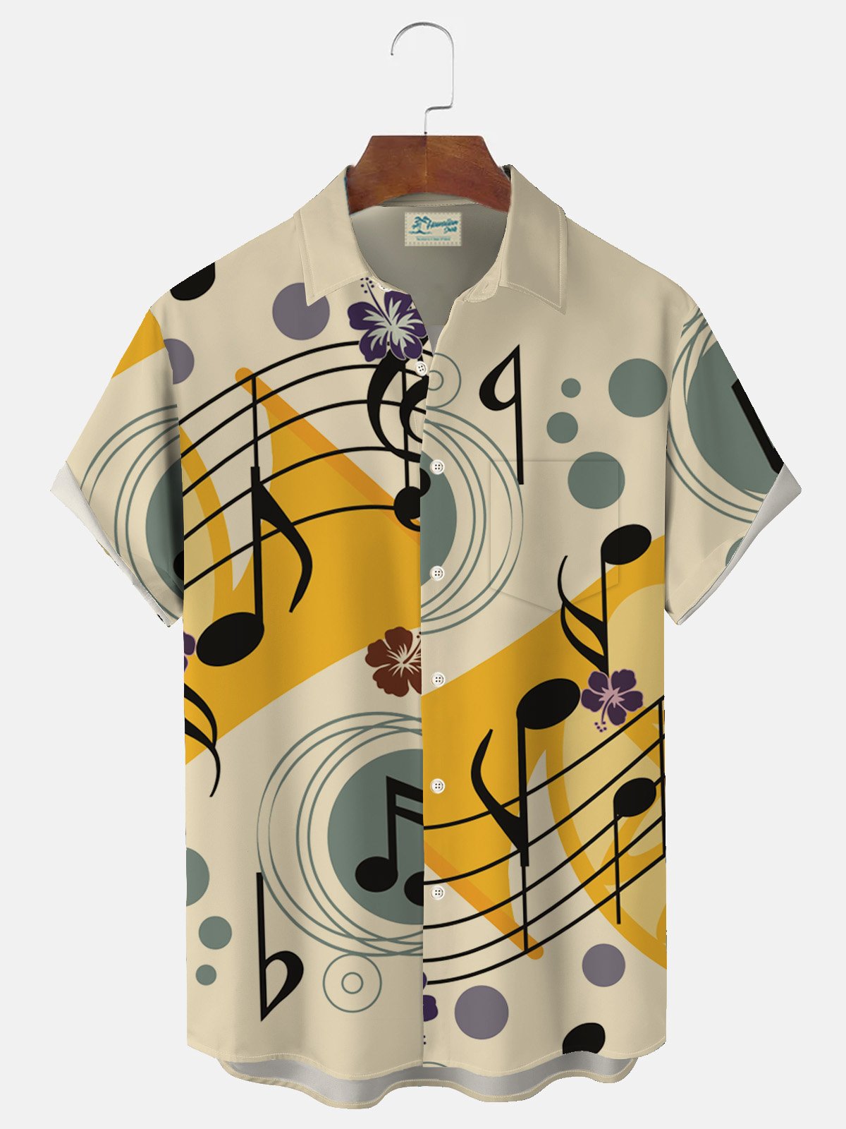 Alohadaddy Music Note Print Men's Button Pocket Shirt
