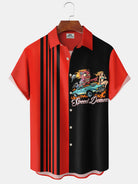 Alohadaddy Retro 60s Cartoon Car Flame Pocket Bowling Shirt