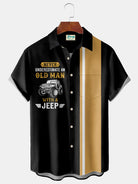 Alohadaddy Vintage Bowling Car Print Men's Chest Pocket Stretch Shirt Big Tall