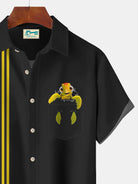 Alohadaddy Vintage Bowling Funny Turtle Print Beach Men's Hawaiian Big&Tall Shirt With Pocket