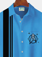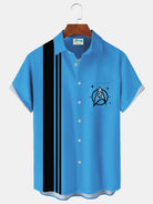 Alohadaddy Vintage Bowling Geometric Cartoon Print Men's Chest Pocket Stretch Shirt Big Tall