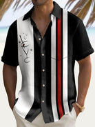 Alohadaddy Vintage Bowling Geometric Cocktail Print Men's Chest Pocket Stretch Shirt Big Tall