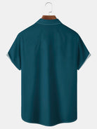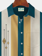 Alohadaddy Vintage Bowling Geometric Print Chest Pocket Stretch Shirt Big Tall