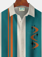 Alohadaddy Vintage Bowling Geometric Starburst Print Men's Chest Pocket Stretch Shirt Big Tall