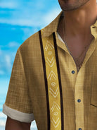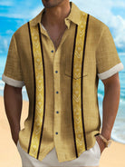 Alohadaddy Vintage Bowling Men's Hawaiian Shirt Stripe Print Guayabera Pocket Camping Shirt