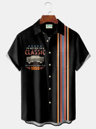 Alohadaddy Vintage Bowling Muscle Car Print Men's Chest Pocket Stretch Shirt Big Tall