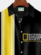 Alohadaddy Vintage Bowling National Sarcasm Society Geometric Print Chest Pocket Stretch Shirt Big Tall