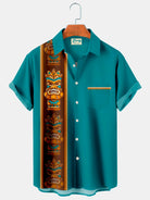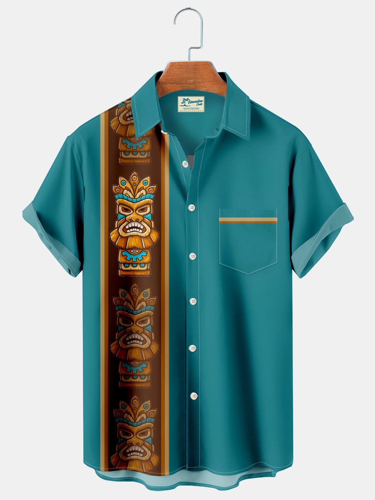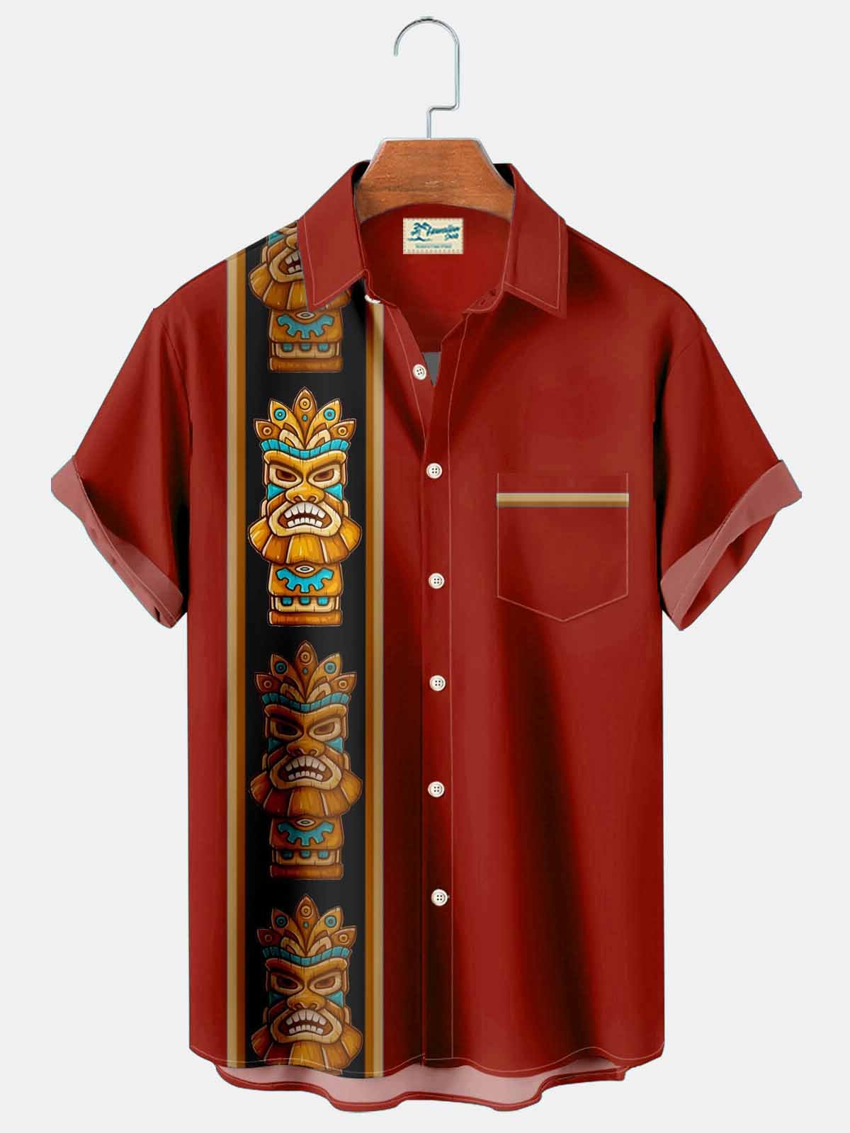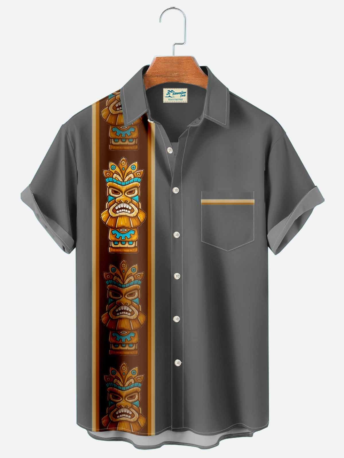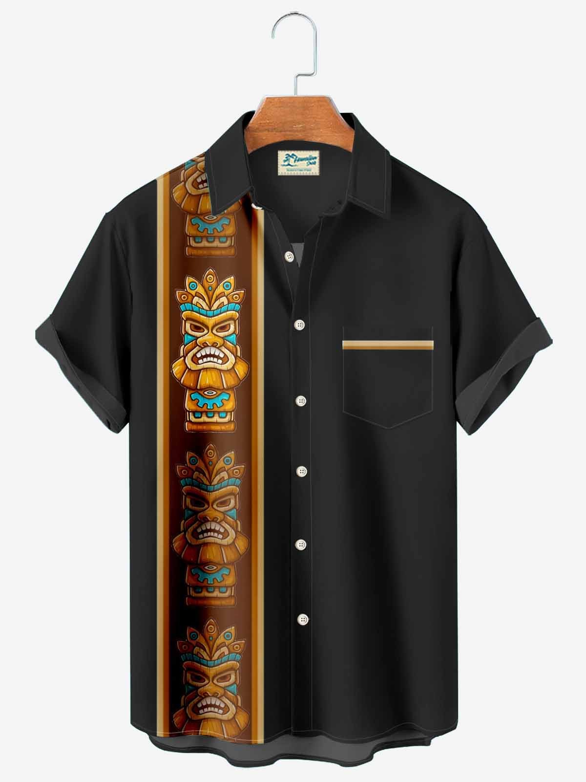 Alohadaddy Vintage bowling tiki totem men's pocket casual button shirt