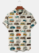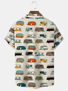 Alohadaddy Vintage Camper Cartoon Khaki Men's Hawaiian Shirts Pocket Camp Shirts Big Tall