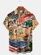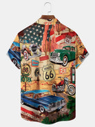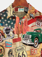 Alohadaddy Vintage Car Print Men's Chest Pocket Stretch Shirt Big Tall