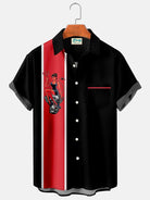 Alohadaddy Vintage Devil Biker Print Pocket Bowling Shirt