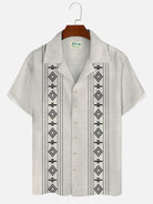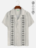 Alohadaddy Vintage Holiday Beach Men's Guayabera Shirt Ethnic Geometric Art Bowling Shirt Big Tall