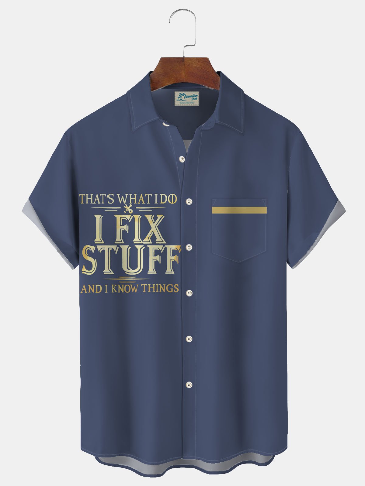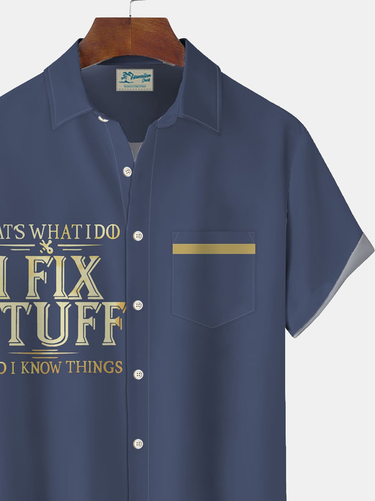 Alohadaddy Vintage I Fix Stuff Print Men's Button Pocket Shirt