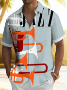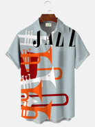 Alohadaddy Vintage Jazz Music Print Chest Pocket Men's High Shirt