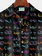 Alohadaddy Vintage Line Cartoon Print Men's Chest Pocket Stretch Shirt Big Tall
