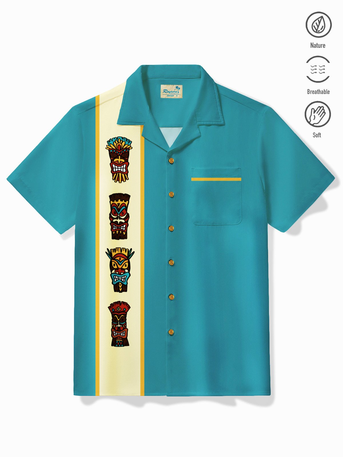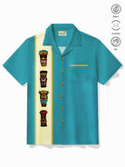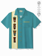 Alohadaddy Vintage Men's Bowling Shirt Stretch TIKI Totem Art Cartoon Pocket Camp Shirt Big Tall
