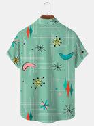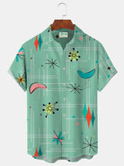Alohadaddy Vintage Mid-Century Geometric Green Men's Camp Shirt Easy Care Hawaiian Shirts Big Tall