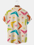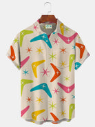 Alohadaddy Vintage Mid-Century Geometric Khaki Men's Shirt Stretch Pocket Camp Shirt Big Tall