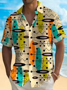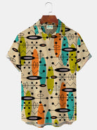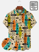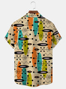 Alohadaddy Vintage Mid-Century Geometric Khaki Men's Shirt Stretch Pocket Camp Shirt Big Tall