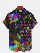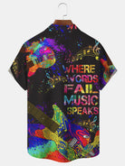 Alohadaddy Vintage Music Instrument Notes Printed Men's Button Pocket Shirt