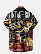 Alohadaddy Vintage Rock Print Men's Chest Pocket Stretch Shirt Big Tall