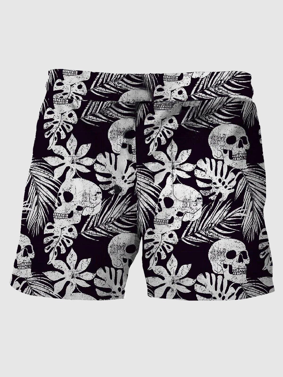 Alohadaddy Vintage Skull Plant Leaf Men's Beach Trunks Swim Trunks