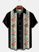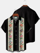 Alohadaddy Vintage Vacation Black Men's Guayabera Shirts Stretch Aloha Bowling Camp Shirts