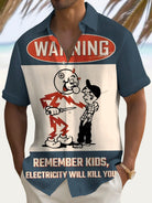 Alohadaddy Vintage Warning Cartoon Print Men's Chest Pocket Stretch Shirt Big Tall