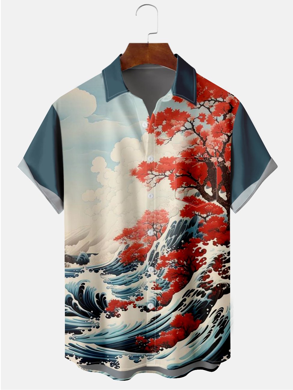 Alohadaddy Blue Eastern Japanese Waves Painting Casual Plus Size Shirts