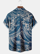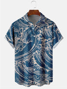 Alohadaddy Eastern Japanese Blue Waves Pattern Casual Plus Size Shirts