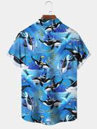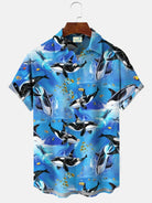 Alohadaddy Ocean Whale Coconut Tree Button Pocket Casual Short Sleeve Shirt