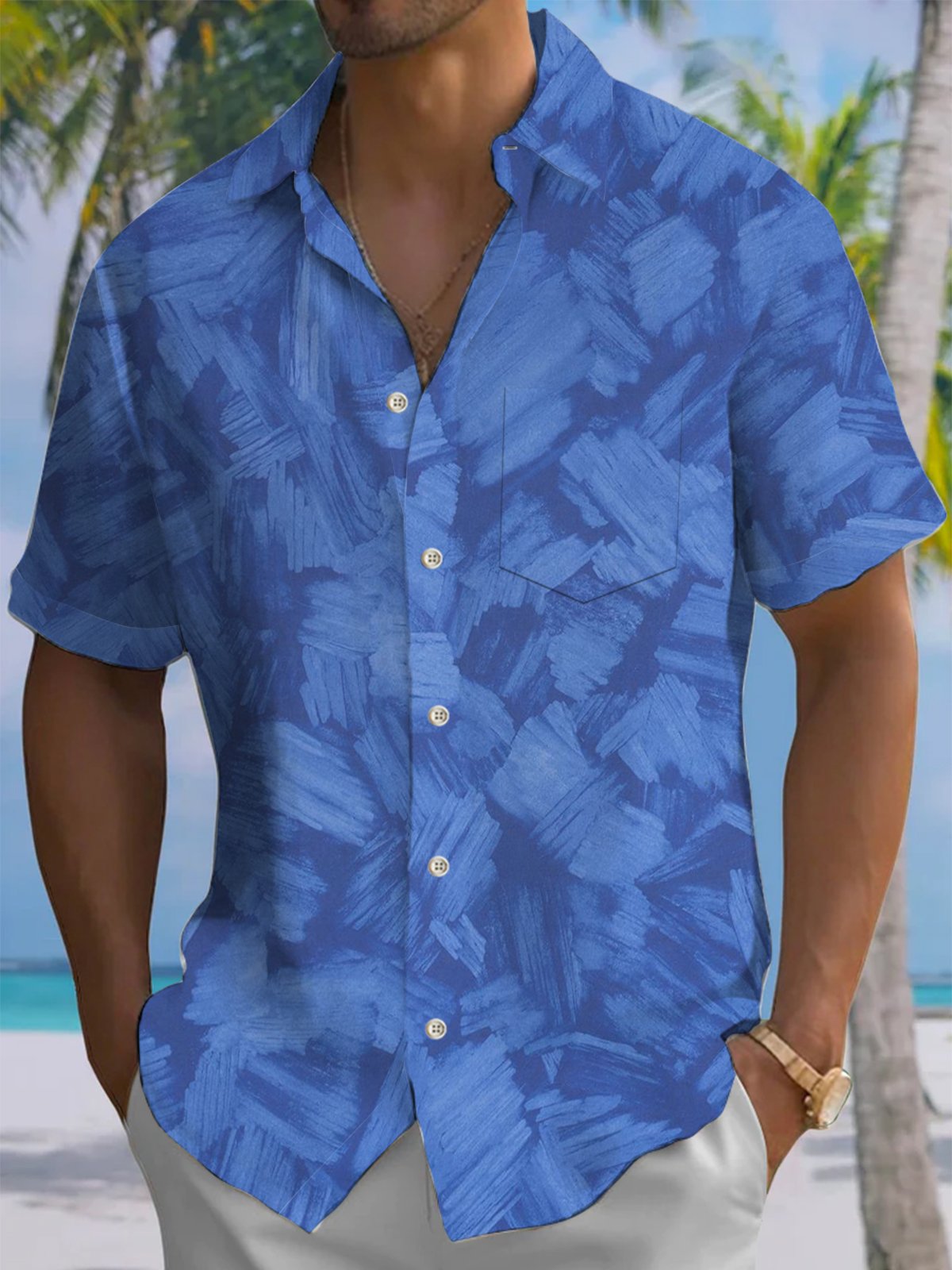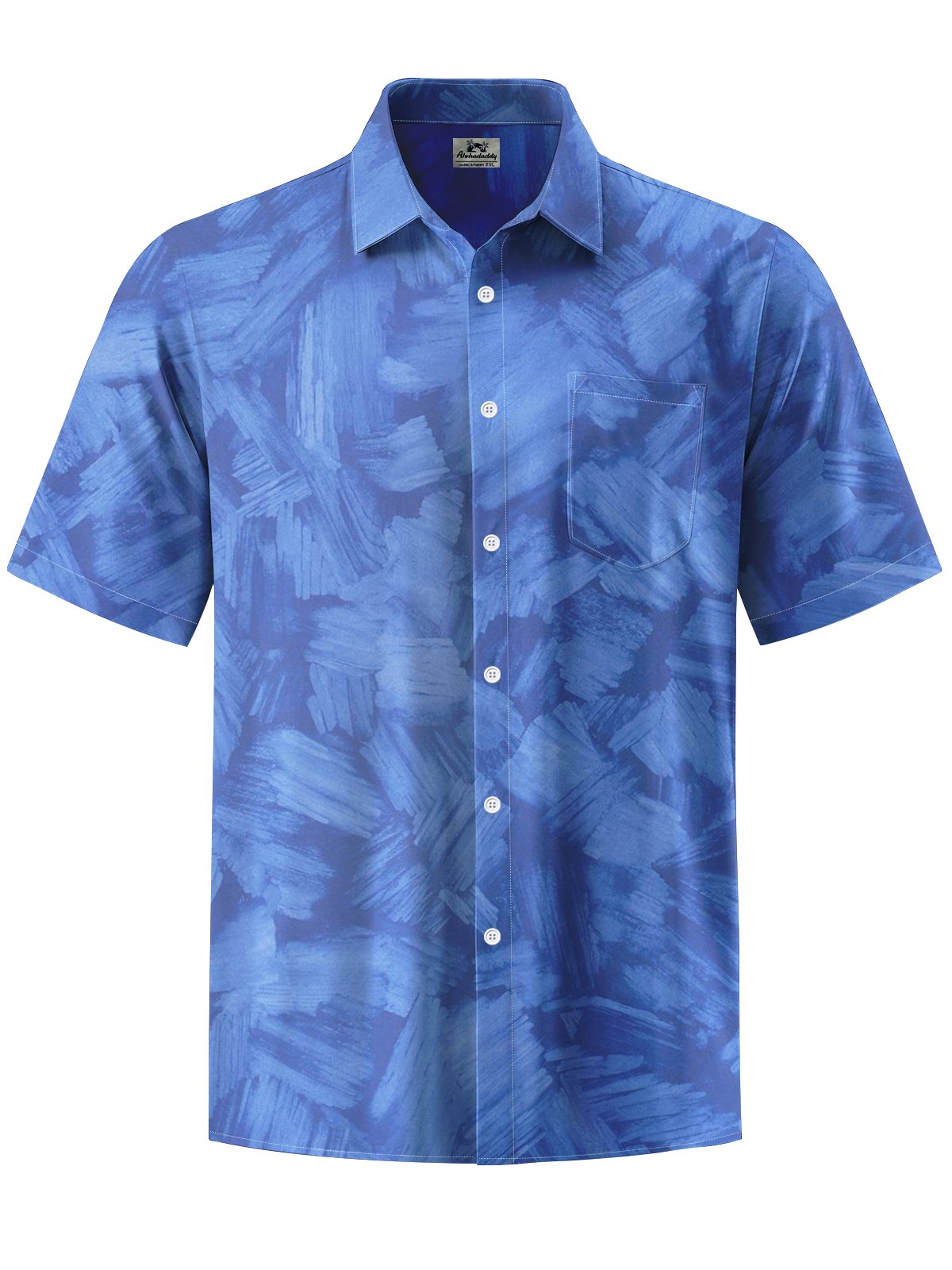 Alohadaddy® Casual Abstract Blue Printed Button Pocket Stretch Men's Short Sleeve Shirt Big & Tall
