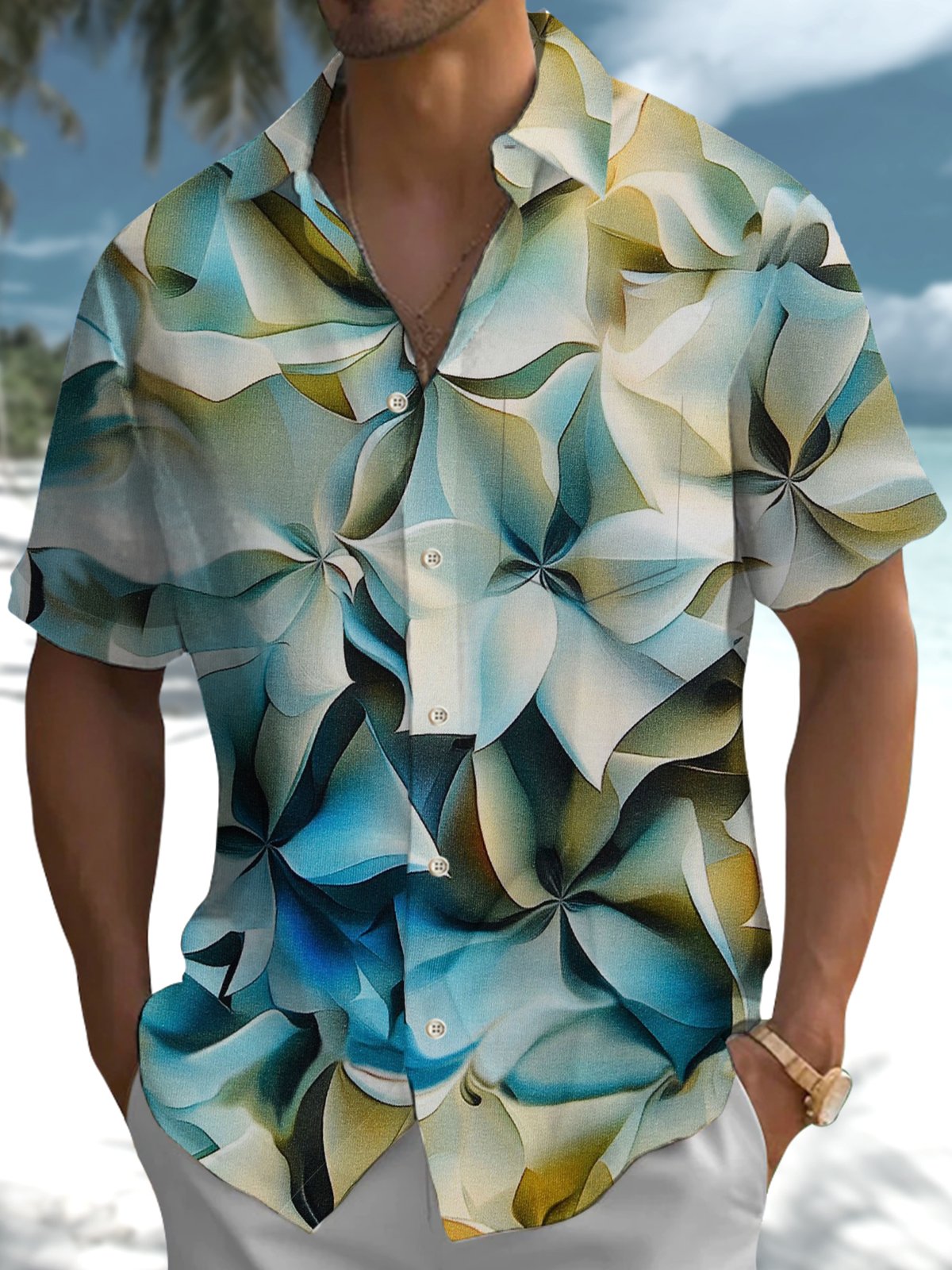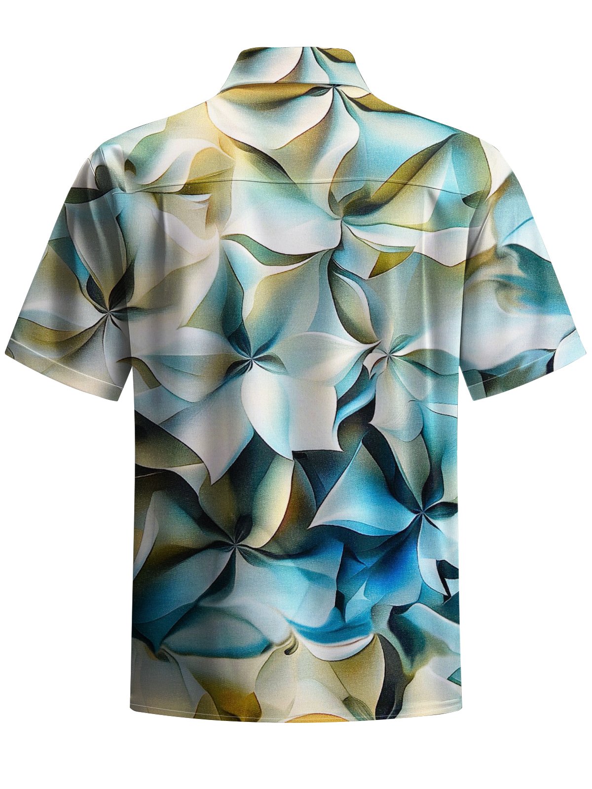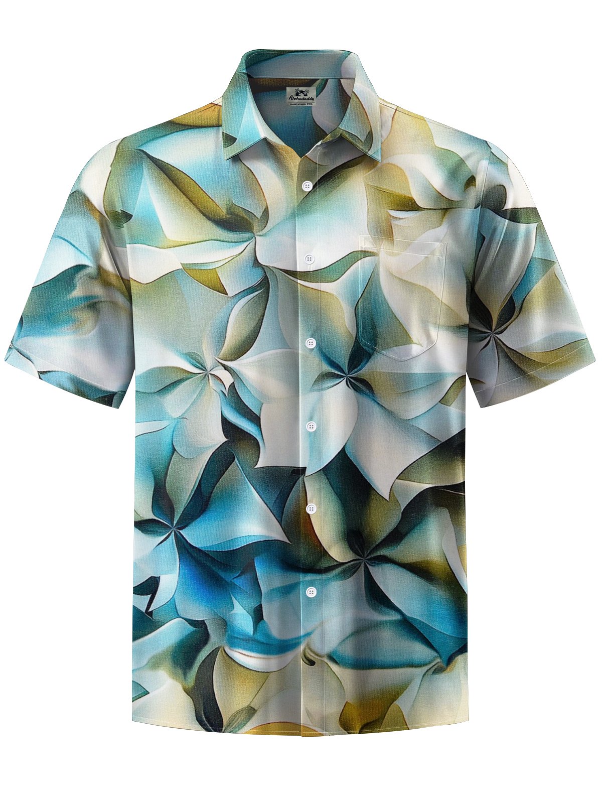 Alohadaddy® Casual Abstract Flower Print Art Pocket Stretch Men's Short Sleeve Shirt Big & Tall