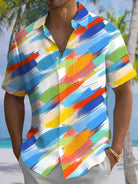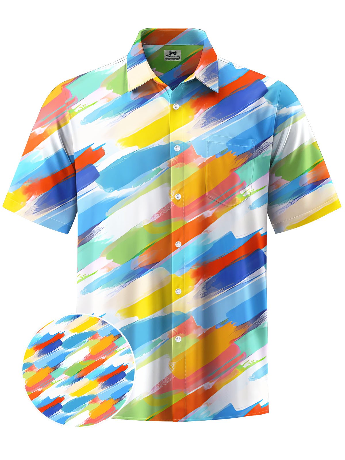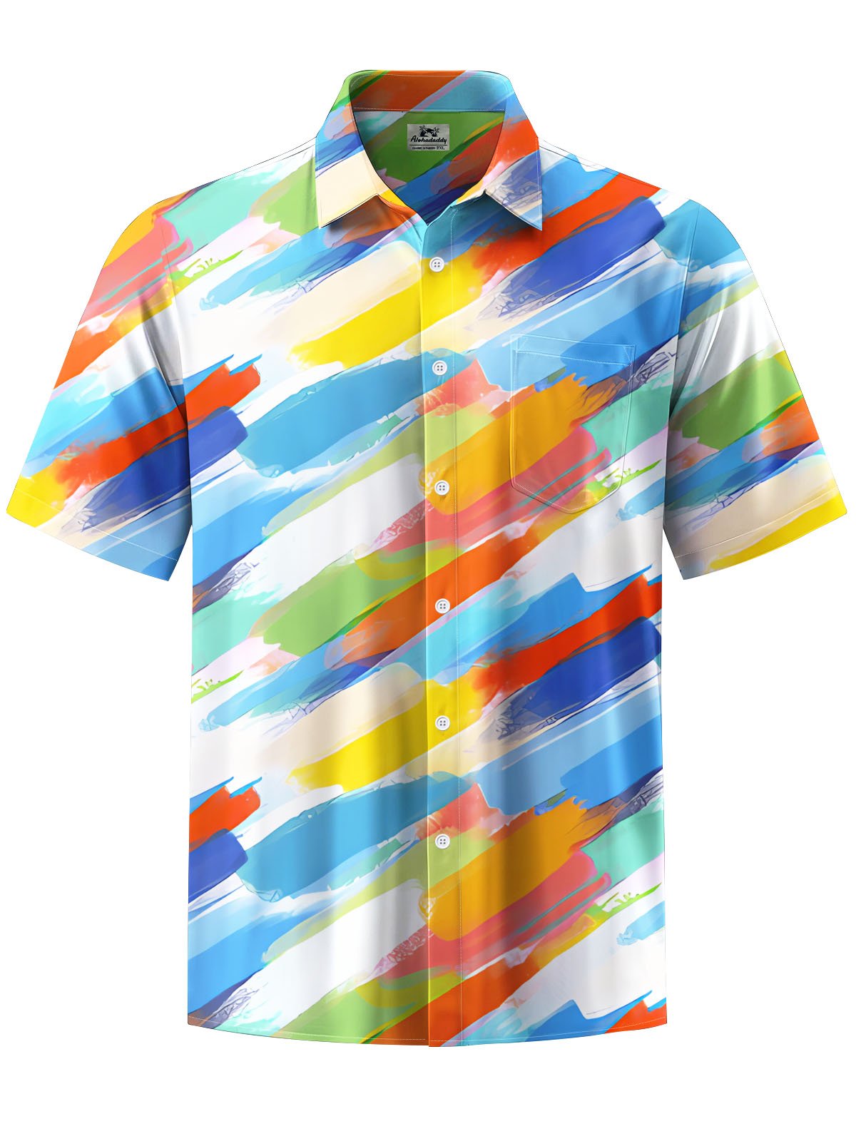 Alohadaddy® Casual Abstract Graffiti Print Art Chest Pocket Men Short Sleeve Shirt Big & Tall