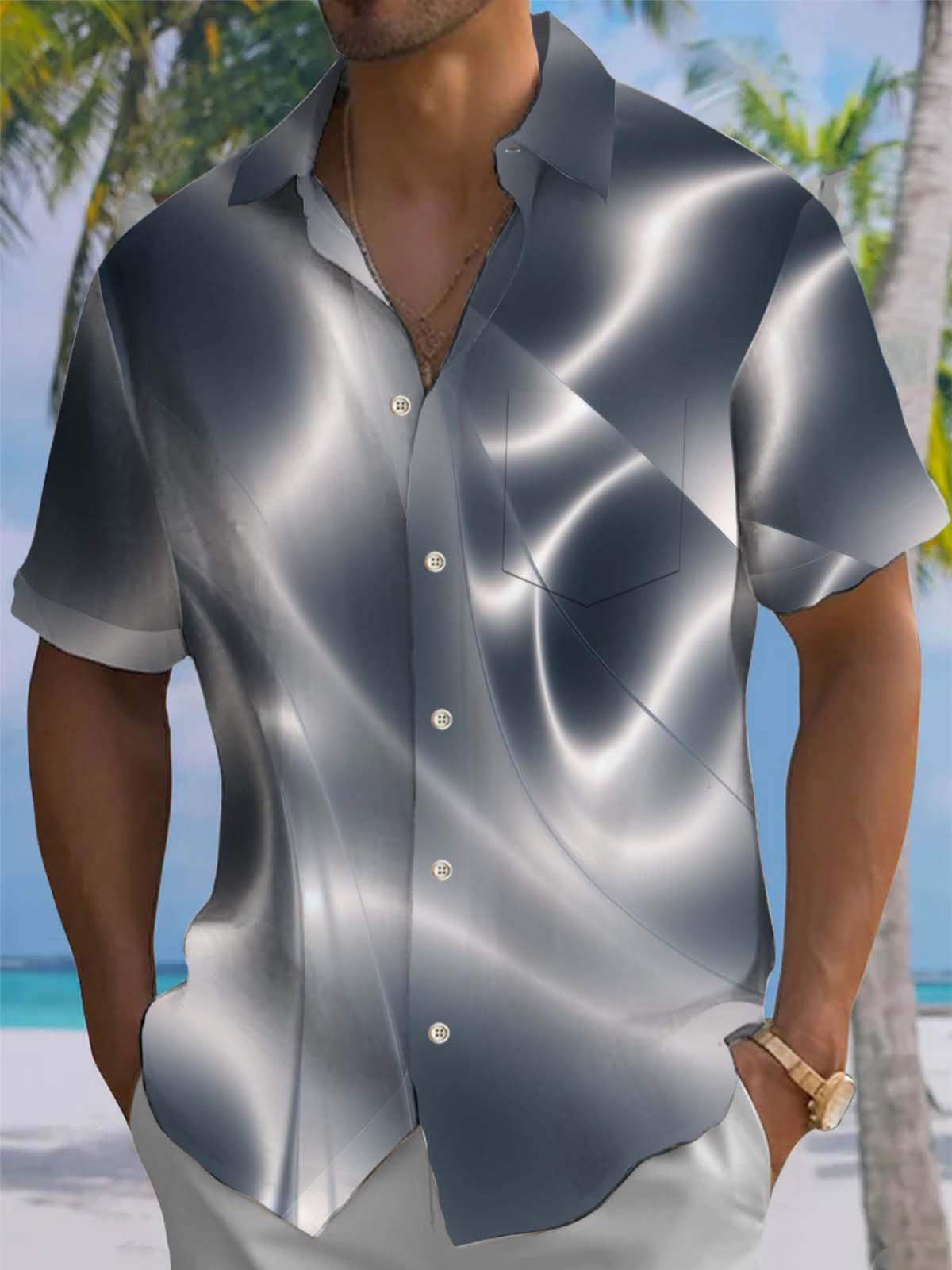 Alohadaddy® Casual Abstract Print Art Pocket Stretch Men's Short Sleeve Shirt Big & Tall