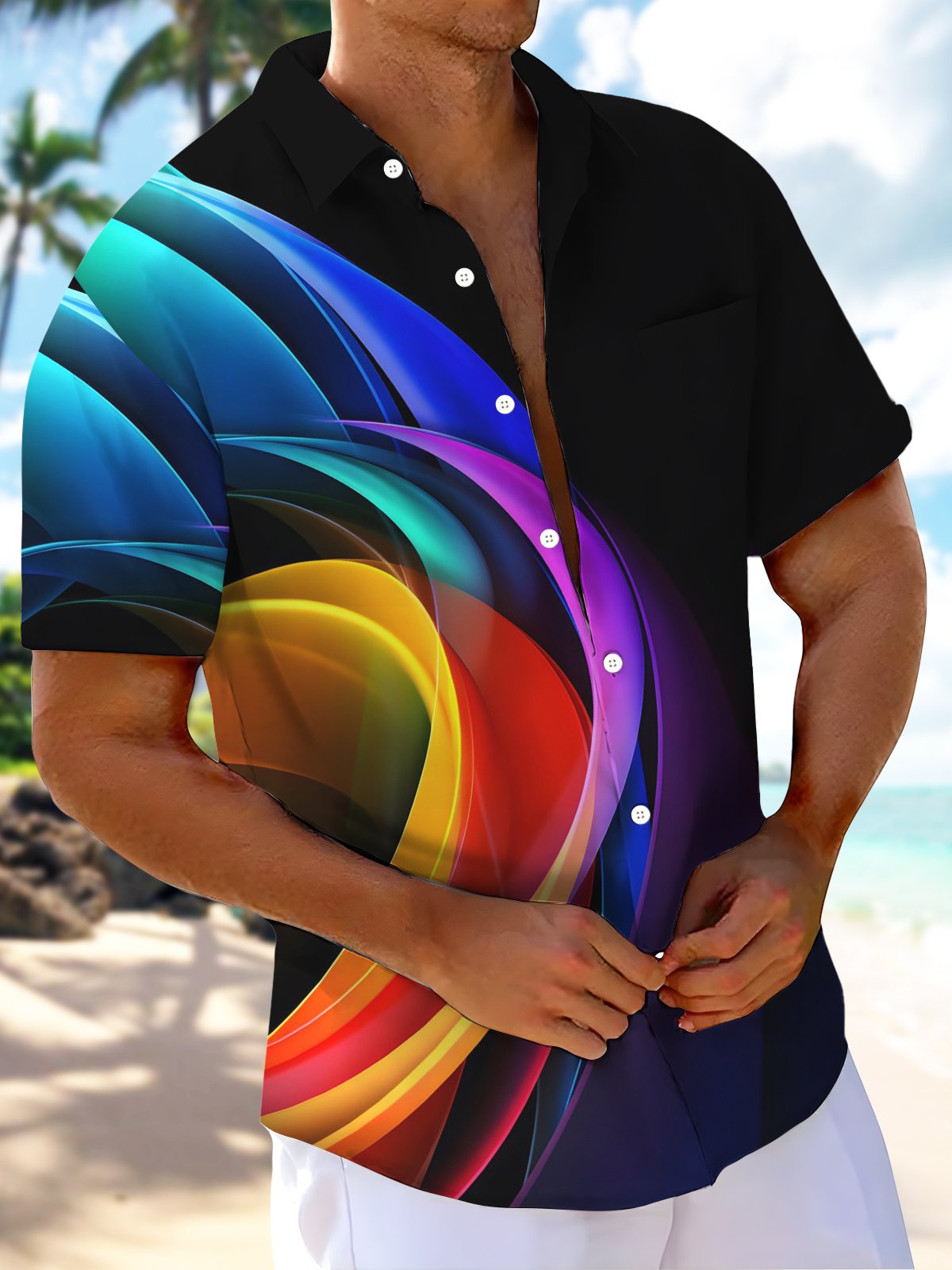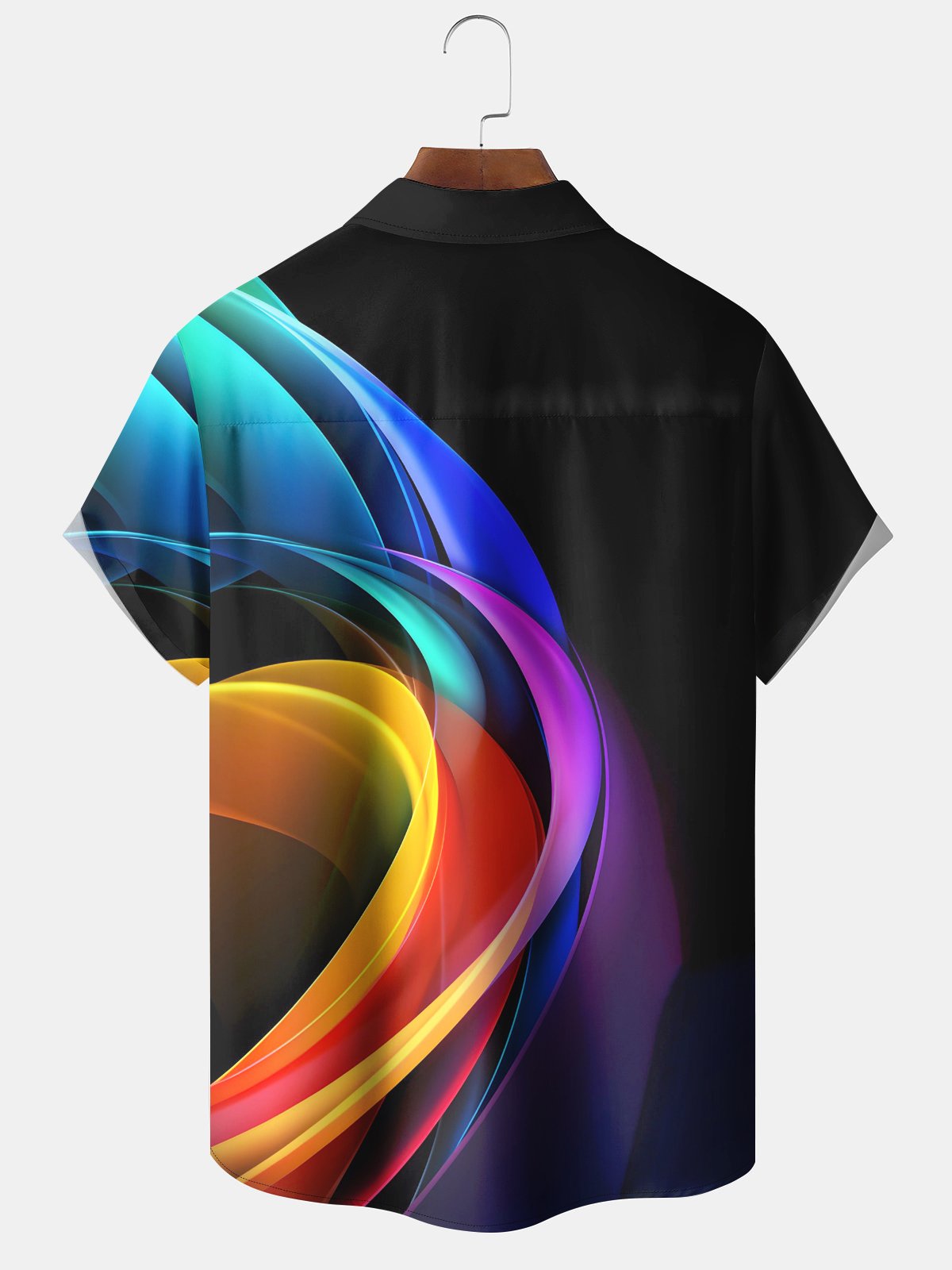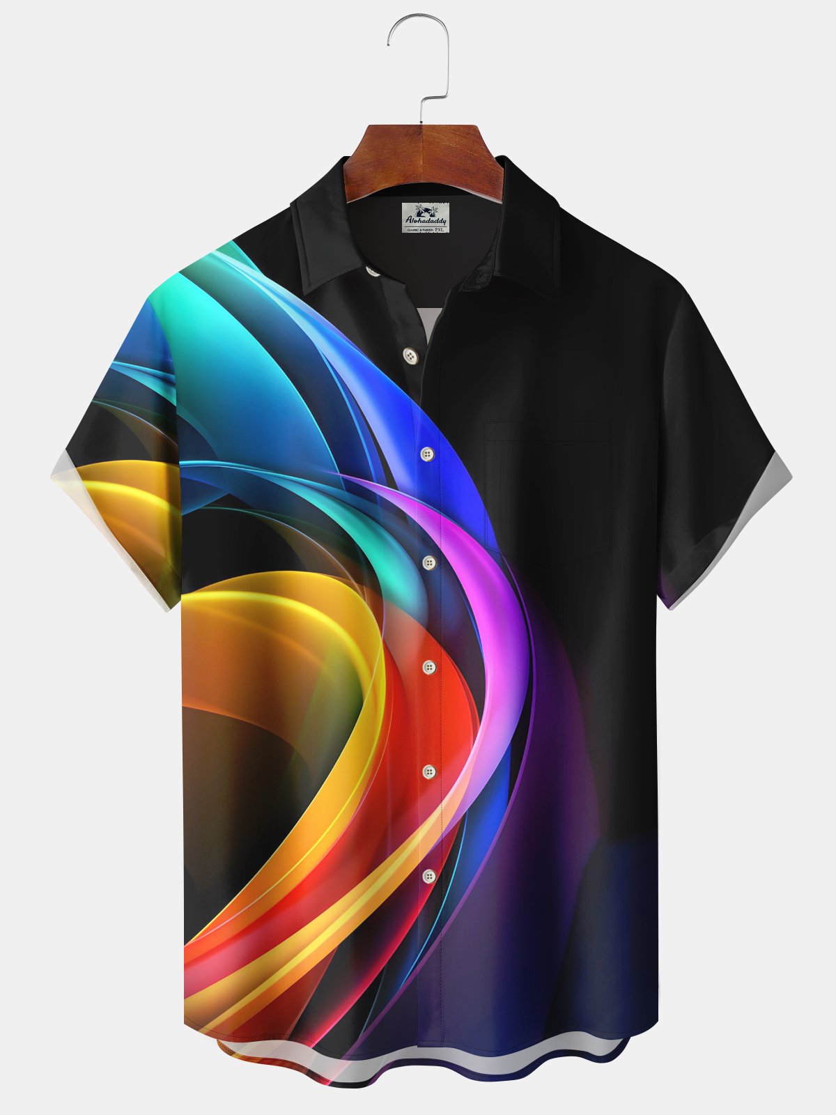 Alohadaddy® Casual Abstract Print Pocket Button Stretch Men's Short Sleeve Shirt Big & Tall