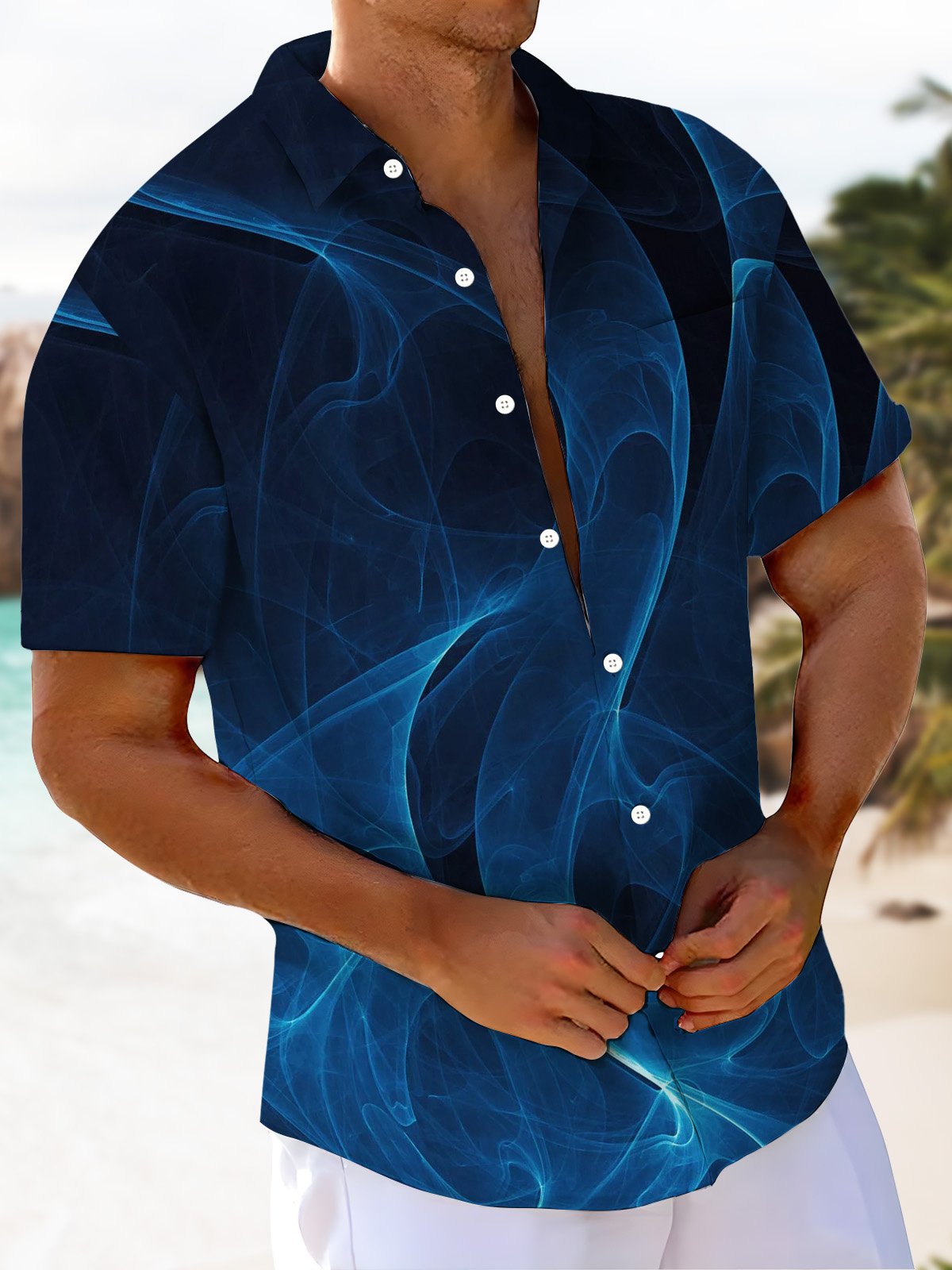 Alohadaddy® Casual Abstract Texture Art Print Chest Pocket Men Short Sleeve Shirt Big & Tall