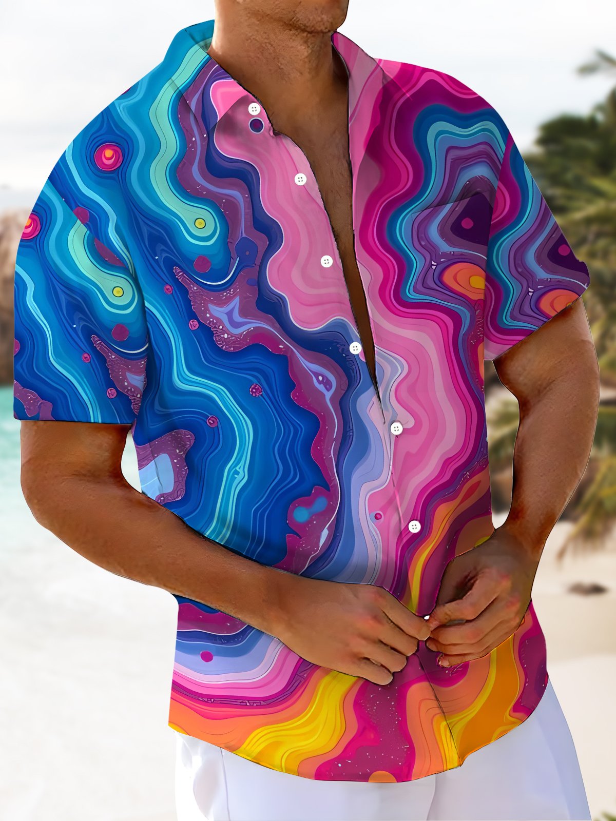 Alohadaddy® Casual Abstract Texture Art Print Moisture Wicking Men's Short Sleeve Shirt Big & Tall