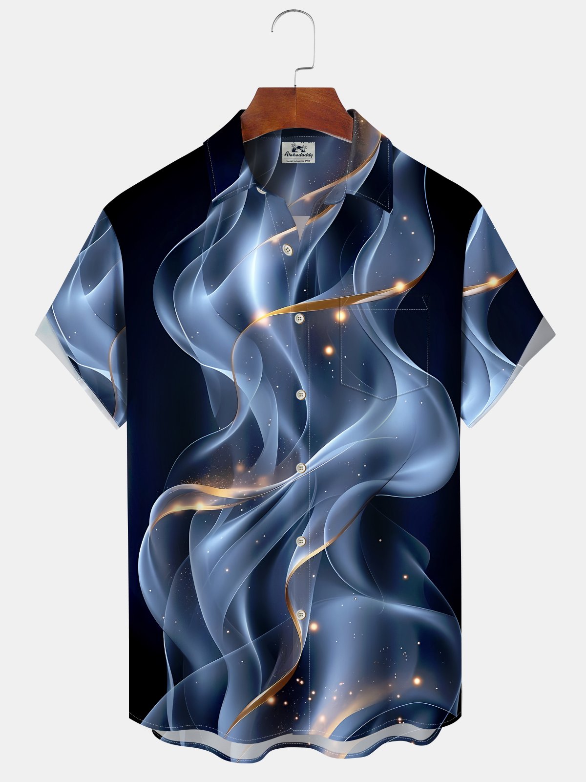 Alohadaddy® Casual Abstract Textured Print Chest Pocket Stretch Oversized Men's Short Sleeve Shirt