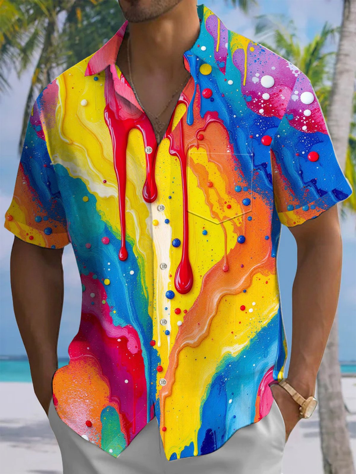 Alohadaddy® Casual Acrylic Abstract Gradient Art Print Men's Short Sleeve Shirt Big & Tall